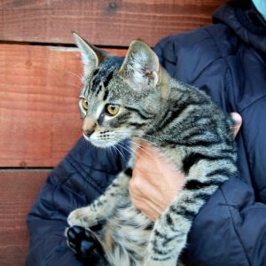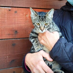 Un piccolo trovatello che girava da solo per la strada, ignaro dei pericoli e delle macchine che gli sfrecciavano accanto. E’ un gattino buono e socievole.