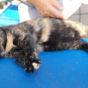 Tap è una gattina reduce da una forma di gastroenterite che le ha causato dei danni al cervelletto causandole scompensi di equilibrio. L’unica di un’intera cucciolata che ancora aspetta il suo momento, una casa tutta sua. Ha circa 4 mesi ed è molto affettuosa. I suoi problemi motori non influiscono sul suo carattere gioviale e sulla sua spiccata curiosità. Con il passare degli anni imparerà sempre meglio a conviverci ma la piccola continuerà ad essere un pò ballerina. Tap ha urgentemente bisogno di una famiglia tutta sua per poter finalmente lasciarsi alle spalle un trascorso infelice. La piccola naturalmente può essere adottata, può vivere una vita normale e non infettare altri gatti.