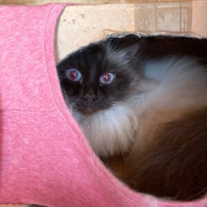 Teodoro è un gatto di 6 anni, sterilizzato, simil Sacro di Birmania ed è rimasto orfano di padrona. E’ un gatto docile abituato a vivere in casa e all’esterno. Ancora non lo conosciamo bene tanto da potervi informazioni in più sul suo carattere visto lo stress della situazione e l’ingresso al rifugio.