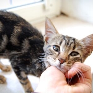 E’ l’ultima rimasta dei 9 gattini lasciati il 21 Ottobre 2020 in una scatola nei pressi del rifugio. E’ stata per un po’ di tempo in stallo per consentirle di recuperare forze e vivacità. Adesso sta bene, è una gattina dolce che ama le coccole e aspetta solo di trovare una famiglia che le offra ospitalità ed affetto.