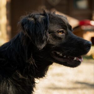 È una taglia media di circa 6 mesi, compatibile e socievole con altri cani, no gatti.