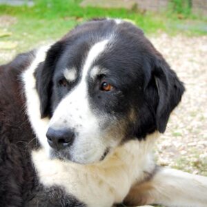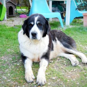Ha 7 anni, è una taglia XXL, molto pacata e tranquilla sia con le persone che con altri animali.