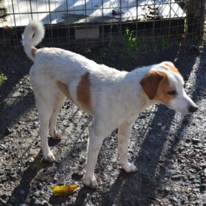 Olmo è stato abbandonato insieme ad altri 3 cagnetti all’inizio di via Trevignanese intorno al 21 Ottobre 2020. I 4 cani hanno fatto branco e sono diventati imprendibili essendo molto paurosi e liberi di scappare in una zona molto ampia. Così abbiamo chiesto aiuto ad una signora, dalla quale i cani cercavano riparo, che ha provveduto a nutrirli, dare loro riparo con la speranza di poter creare un legame di fiducia. Il 2 Gennaio 2020, i cagnolini si erano rintanati in una casetta di legno di proprietà della signora, che ha prontamente chiuso la porta e ci ha chiamati. Ci siamo catapultati sul posto e con un pò di difficoltà, dato anche il tempo, li abbiamo portati al rifugio. Olmo si è sciolto, come gli altri due, e si è rivelato un cagnetto molto affettuoso, vivace e molto giovane.