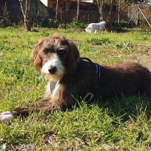 Di lui sappiamo poco ma sicuramente ha subito dei traumi in passato che hanno lasciato delle profonde ferite. Luiss è un cane molto affettuoso che ha però difficoltà nella gestione della frustrazione e soprattutto a sopportare la manipolazione. E’ stato, per di più, traumatizzato dall’uso del bastone accalappia cani, che veniva usato nel canile e questo ha fatto sì che non sopporti il collare e la corda. Dopo un intenso e duro lavoro con i nostri educatori ora Luiss riesce a sopportare bene il guinzaglio così da poter fare delle lunghe e piacevoli passeggiate. Da Novembre Luiss ha fatto degli enormi passi avanti, anche con gli altri cani con i quali riesce a socializzare bene.